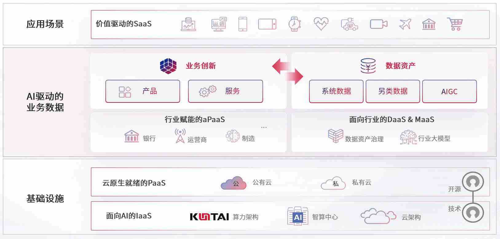 数字时代,,围绕企业数字化转型的关键要素,,大资本210cc数码开创性的提出数云融合战略和技术体系框架,,着力在云原生、、、数字原生、、AI原生和信创产业上架构产品和服务能力,,为处在不同数字化转型阶段的快消零售、、、、汽车、、金融、、、医疗、、、政企、、、、教育、、、运营商等行业客户提供泛在的敏捷IT能力和融合的数据驱动能力,,,,构建跨界融合创新的数字业务场景和新业务模式,,,,助力企业级客户建立面向未来的核心能力和竞争优势,,,全面推动社会的数字化、、、智能化转型升级。。。。