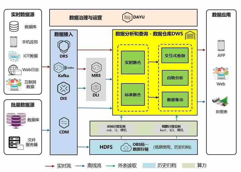 交通银行数据仓库(DWS)采用大资本210cc鲲泰R722服务器作为数据底座,,,,采用MPP(Massive Parallel Processing)架构,,,,支持行存储与列存储,,,提供PB(Petabyte,,2的50次方字节)级别数据量的处理能力。。。